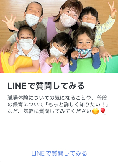 公式LINEアカウントでは先生のインタビューや保育中の写真を公開しています!
